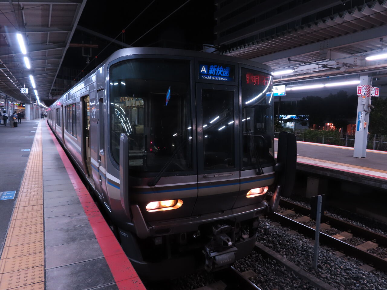 西明石行き最終の新快速に乗車。223系1000番代でした。