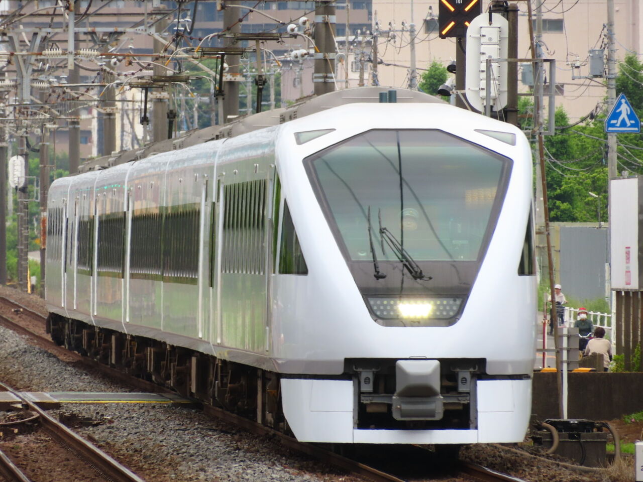 どうせ天気悪いのと、お目当ての列車がこっちから来そうなので、下り方の撮影に変更。スペーシアXってかっこいいんだけど、先頭車と中間車で窓割が違うのはしょうがないとしても、塗装が統一できなかったのが少々もったいない気がします。