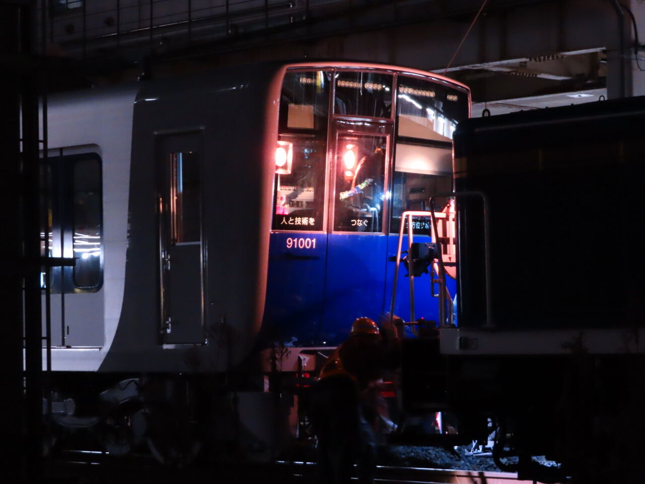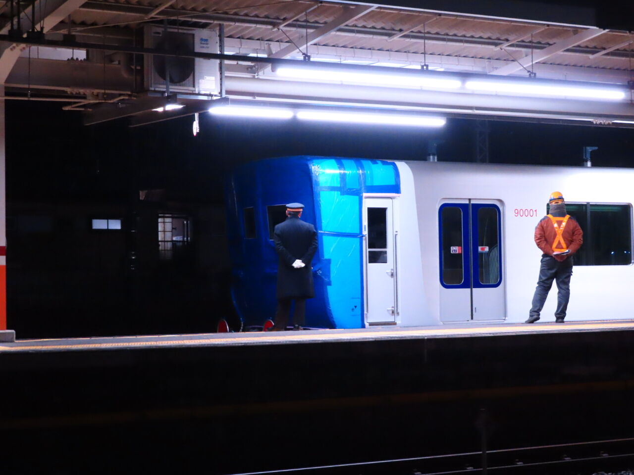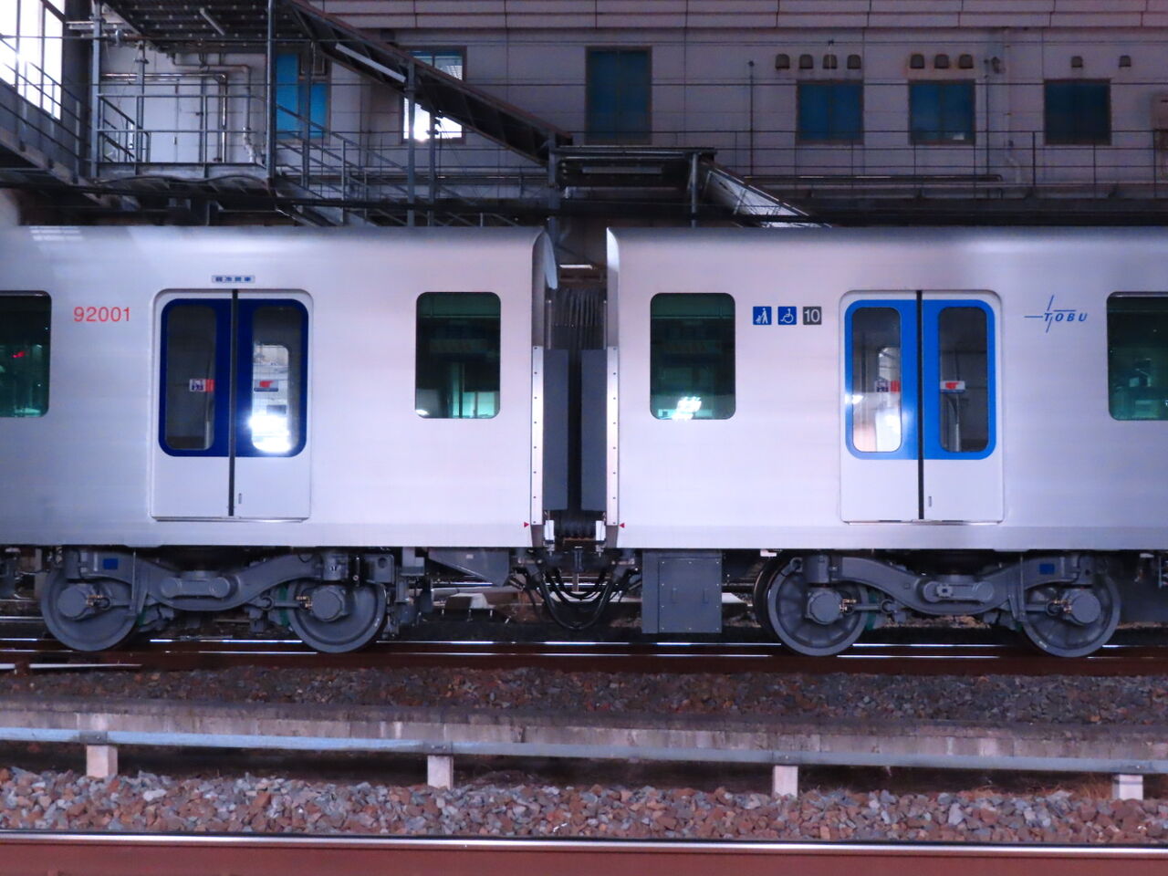 下松から甲種回送されてきた東武東上線の新型車両90000系が、東武日光線との接続駅である栗橋に到着し、ついに東武線の線路までやってきました。