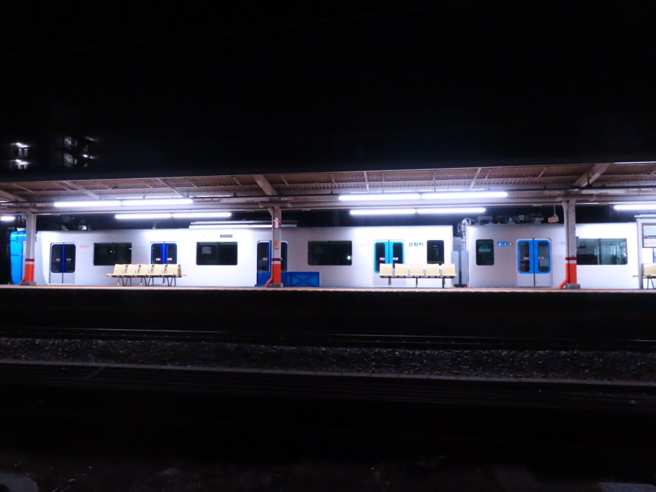 優先席近くのドアが水色で、それ以外は濃いめの青。なぜかしらんけど車番はオレンジ系の色ですね。