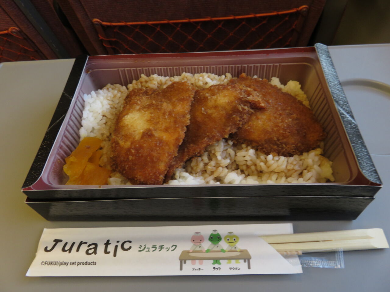 駅で買ったソースカツ丼をいただきます。