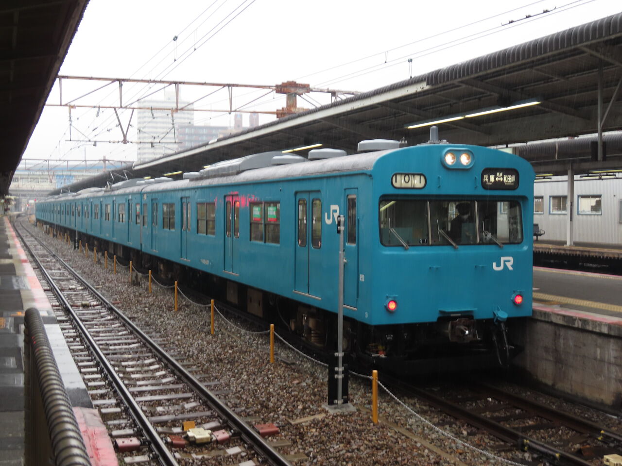 播但線ホームの103系を撮り、